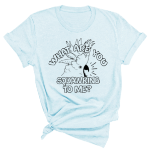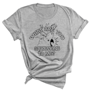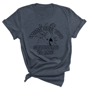 “Breng humor en stijl samen met onze collectie unieke t-shirts featuring grappige vogelontwerpen en de tekst ‘What Are You Squawking To Me?’. Perfect voor vogelliefhebbers die graag een speelse boodschap overbrengen.”
