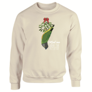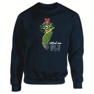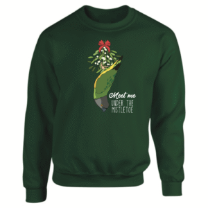 Maak je kerstoutfit compleet met deze unieke en grappige ‘Ugly Christmas Sweater’, speciaal voor papegaaienliefhebbers! De trui heeft de speelse tekst “Meet Me Under the Mistletoe” en een leuke illustratie van een bonte boer op z’n kop. Een echte aanrader voor iedereen die zijn liefde voor papegaaien tijdens de feestdagen wil laten zien!