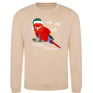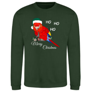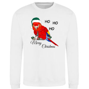 Maak een vrolijk statement deze kerst met deze unieke en grappige ontwerp voor papegaaienliefhebbers! De trui heeft de humoristische tekst “Ho Ho Ho Merry Christmas” en een leuke afbeelding van een ara versierd met kerstlampjes en kerstballen. De perfecte keuze voor iedereen die zijn liefde voor papegaaien tijdens de feestdagen wil laten zien!