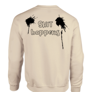 “Omarm je gevoel voor humor en voeg een gedurfde twist toe aan je garderobe met deze unieke sweater. De opvallende ‘Shit Happens’ print op de achterkant geeft een speelse, rebelse uitstraling, perfect voor iedereen die houdt van een vleugje onconventionele stijl. Deze sweater is ontworpen met zorg en gemaakt van hoogwaardige materialen, wat zorgt voor ultiem comfort en een duurzame kwaliteit.