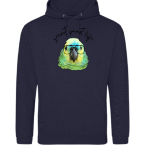 “Met deze geweldige hoodie met print van een amazone met een bril, maak je een slimme statement. Een leuke vooraanzicht foto print van een slimme vogel.”