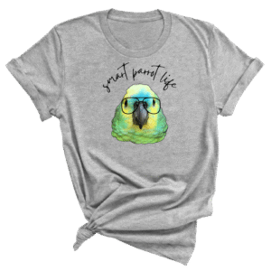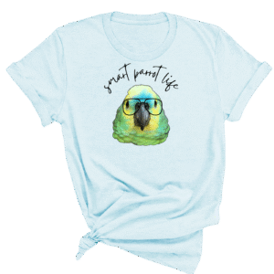 “Met deze geweldige shirt met print van een amazone met een bril, maak je een slimme statement. Een leuke vooraanzicht foto print van een slimme vogel.”