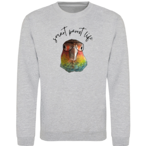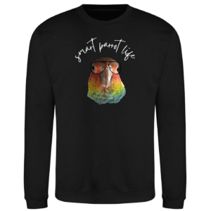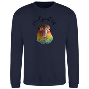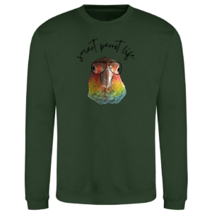 “Met deze geweldige sweater met print van een pyrrhura met een bril, maak je een slimme statement. Een leuke vooraanzicht foto print van een slimme vogel.”
