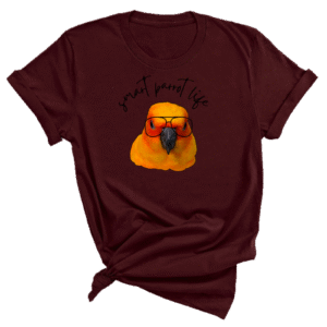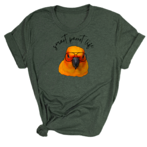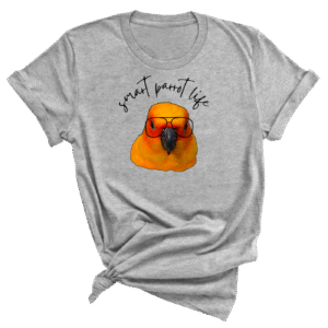 “Met deze geweldige shirt met print van een zonparkiet met een bril, maak je een slimme statement. Een leuke vooraanzicht foto print van een slimme vogel.”